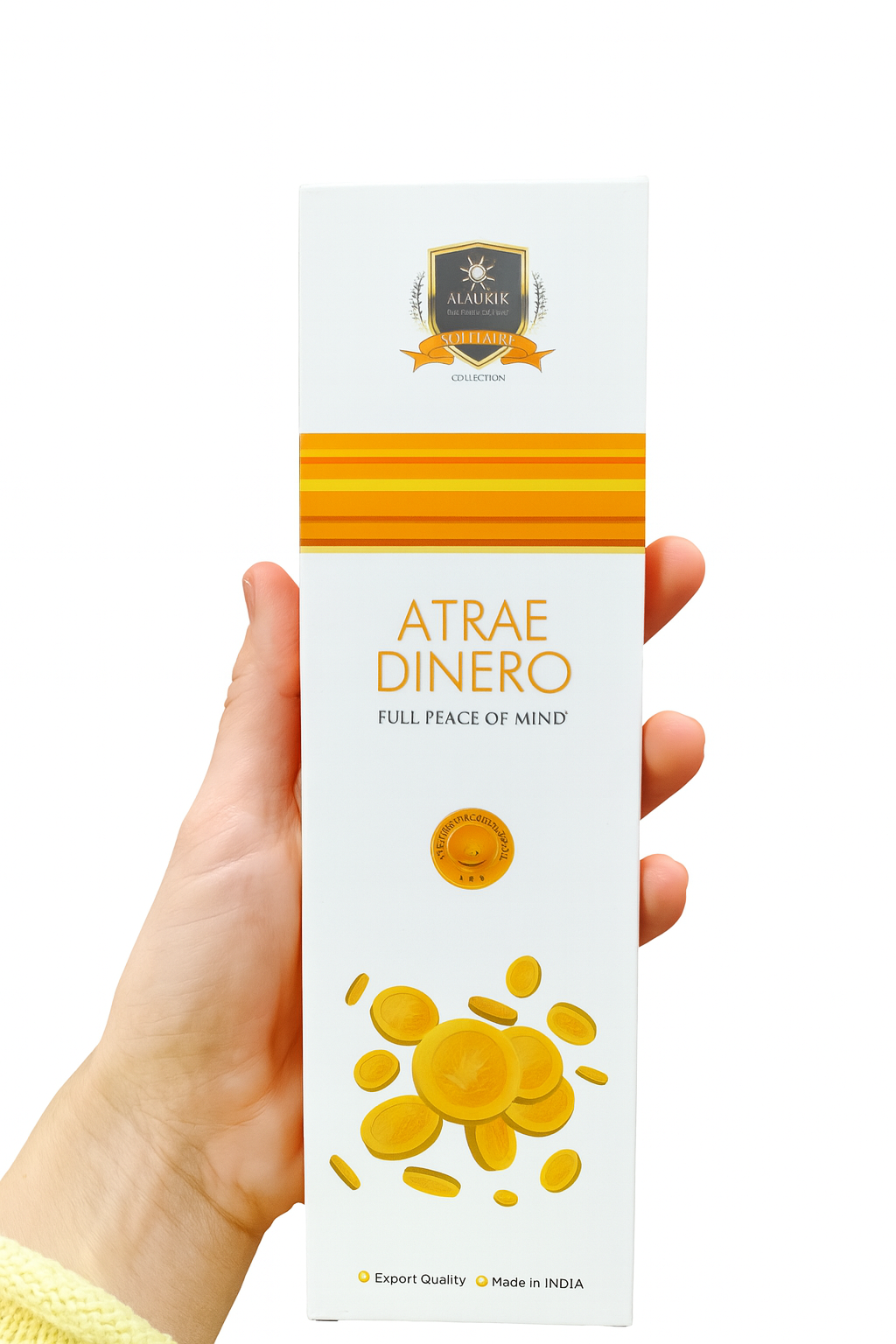 Eleva tu energía y atrae la abundancia con Atrae Dinero, un incienso artesanal de alta calidad hecho en la India. Su aroma cálido y envolvente está diseñado para activar la prosperidad, la suerte y el flujo económico positivo en tu vida.