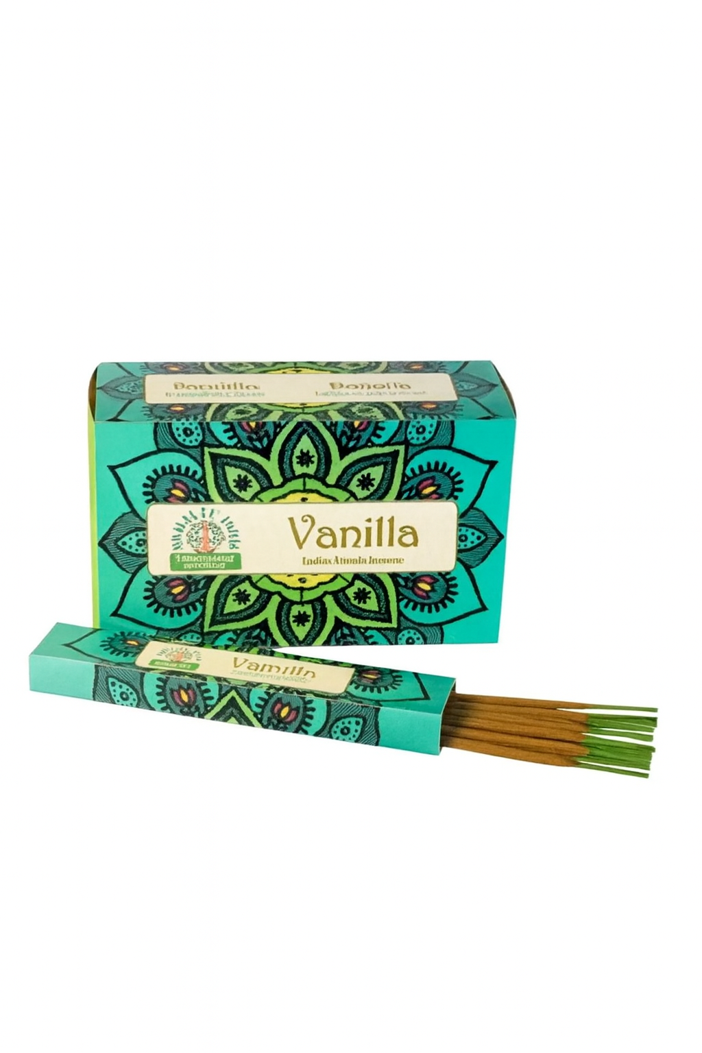 Disfruta de un aroma dulce, cálido y reconfortante con el incienso de Vainilla Namaste India, elaborado artesanalmente bajo la técnica tradicional masala. Sus varillas están hechas con resinas naturales, aceites esenciales y mezclas aromáticas que aportan una fragancia suave y envolvente, ideal para crear ambientes relajantes y agradables.