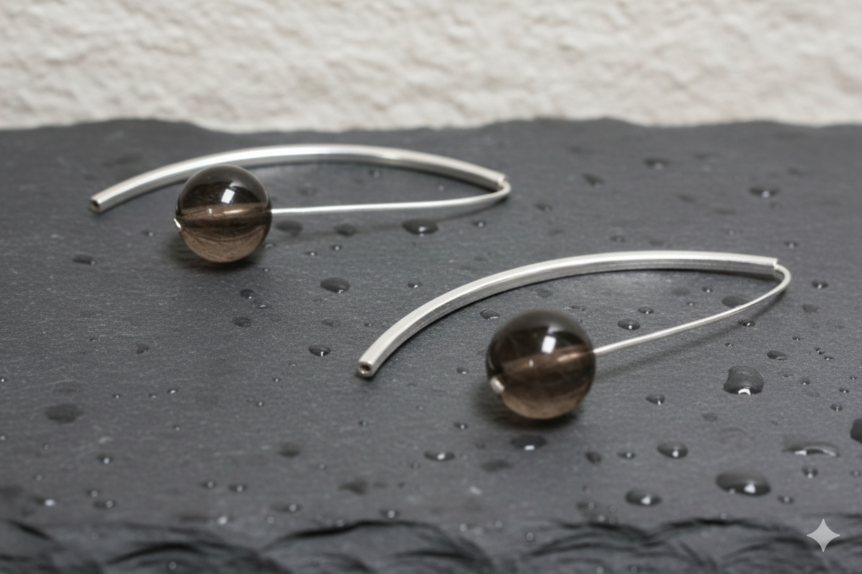 Pendientes de Cuarzo Ahumado Natural y Plata de Ley 925 – Equilibrio y Sofisticación