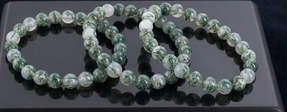 Nota: Al ser piedra natural, el patrón de «ramas» verdes varía en cada cuenta.
