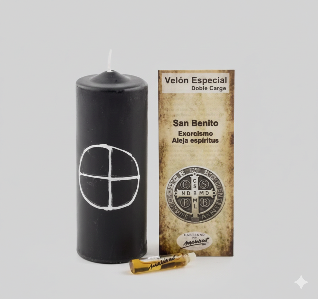 Crea un escudo impenetrable contra las energías negativas. El Velón de San Benito es reconocido en el mundo espiritual como una de las herramientas más potentes para la protección. Su color negro, lejos de ser negativo, actúa como un «agujero negro» que absorbe y transmuta envidias, malas voluntades y presencias no deseadas.